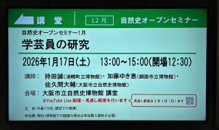 2026年1月17日に大阪市立自然史博物館で開催された自然史オープンセミナー「学芸員の研究」において、浦幌町立博物館からも報告がおこなわれました。