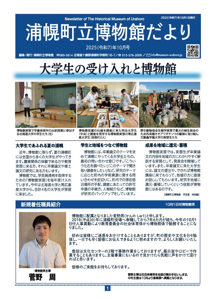 浦幌町立博物館だよりの2025年10月号が発行されました。