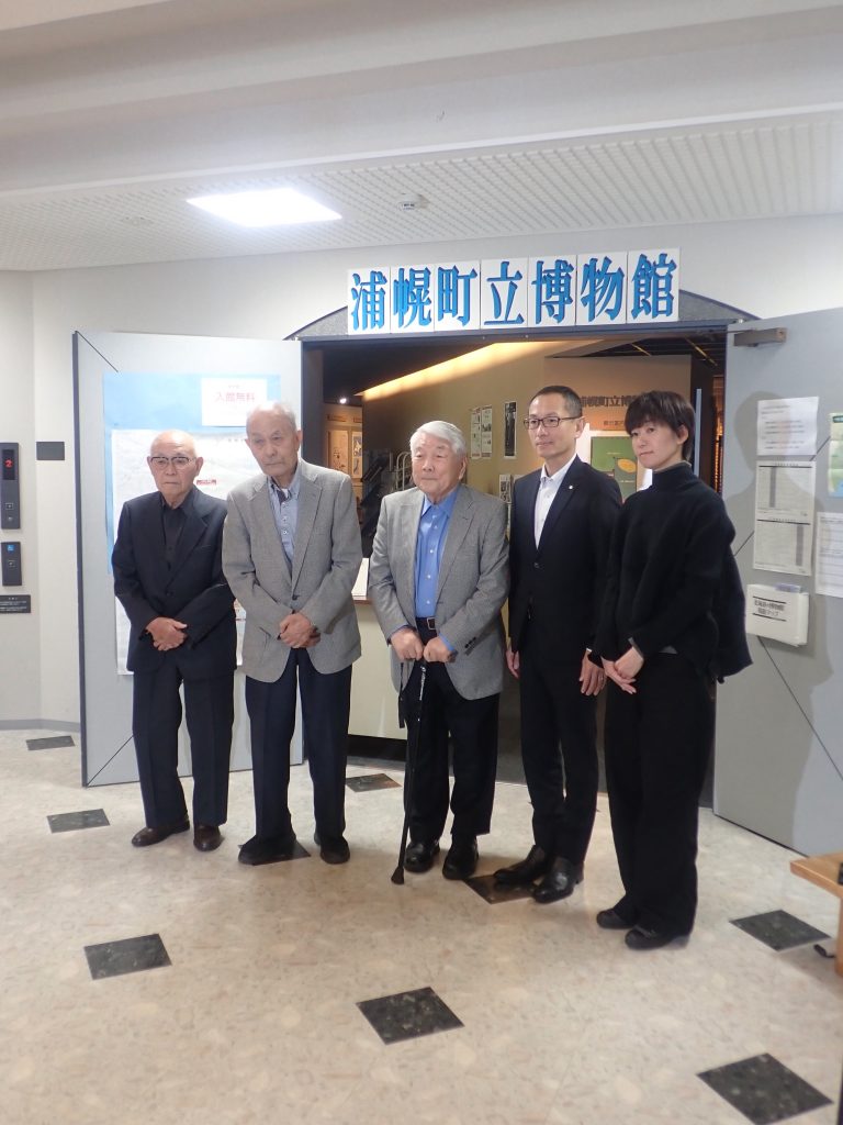 浦幌出身(出生地は札幌市)で、現在はカナダのトロント大学名誉教授である西里静彦博士が来日され、このたび浦幌中学校の同期生とともに浦幌町立博物館を訪問されました。井上亨浦幌町長、上田真弓教育長が出迎え、展示室や図書館を観覧後、しばし懇談されました。